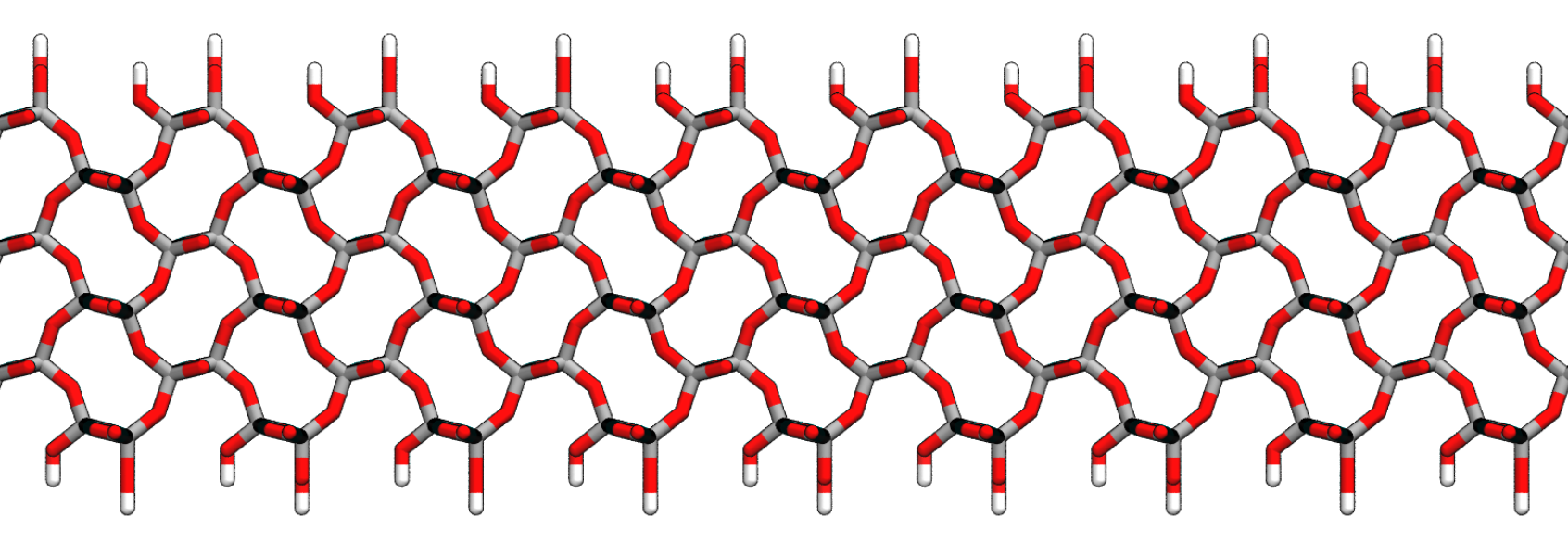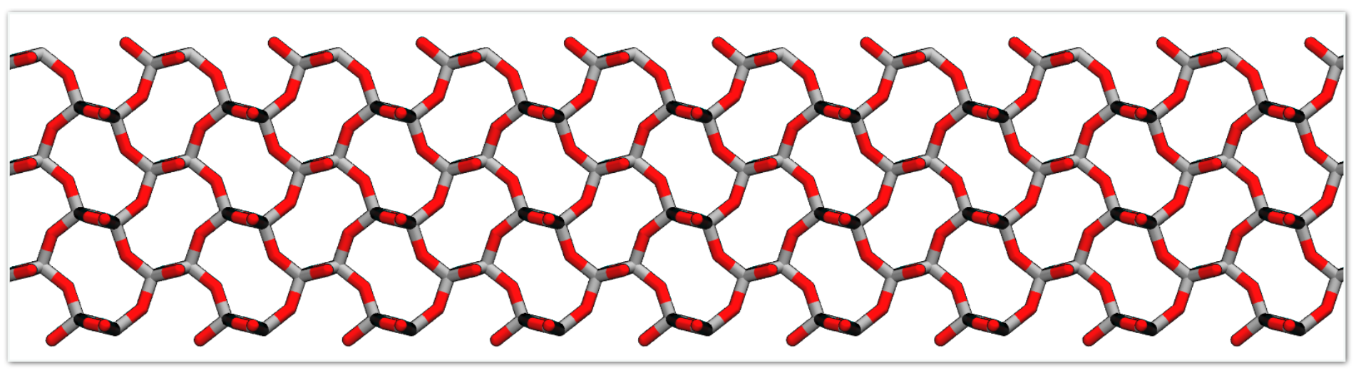 Figure 2: α-cristobalite lattice with 100 plane exposed to z-direction. Note that some surface silicon has oxygens missing.